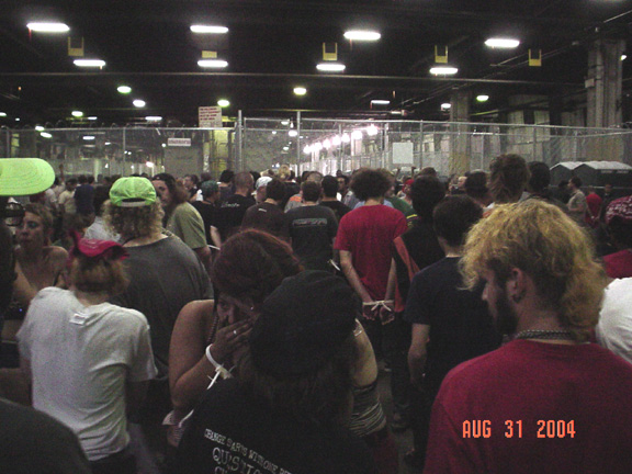 In August of 2004, Connie and I fundraised from supporters to go cover the Republican National Convention protests in NYC and armed with notepads and a donated handy cam we went to cover the action in the streets. On the second day of protests, which was billed by organizers as a day of direct action, the authorities responded heavy handedly, and some 1800+ Americans were arrested in a series of mass arrests. Around 9pm Connie and I were caught up in one of these dragnets. We were then loaded on a bus and taken to Pier 57 on the Hudson River. The pier had long housed a secret unused Department of Homeland security detention center, designed for just such a mass arrest scenario.