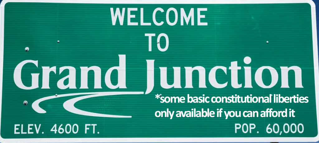 There is, however, one institution that can claim the title of most complicit, and that is the Grand Junction Municipal Court. In a recent letter to the Mayor and City Council of Grand Junction, the American Civil Liberties Union (ACLU) delivers a thundering condemnation of the criminal activity of the local courts, and in particular that of Grand Junction Municipal Court Judge Tammy Eret; according to the ACLU, she “persistently and illegally denies court-appointed counsel to incarcerated people, coerces uncounseled guilty pleas, and often imposes lengthy, uncounseled, illegal jail sentences.”
