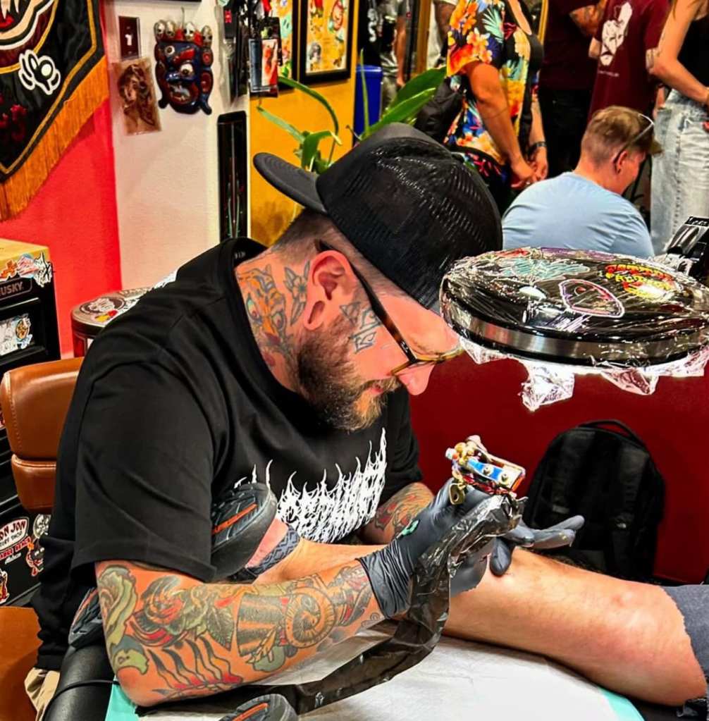 Tobias Peltier: First Street opened its doors on Halloween 2019. Prior to opening, I’d spent some time tattooing across the U.S., Asia and Europe, and after seeing so much and learning how other artists do it, my business partner, Paul Massison, and I came up with a plan to kill our former shop, completely rebrand, and build a brand new space built to our specs. In the last five years, we’ve grown from a three-person crew to a ten, sometimes 11-person crew and have expanded the shop twice to accommodate.