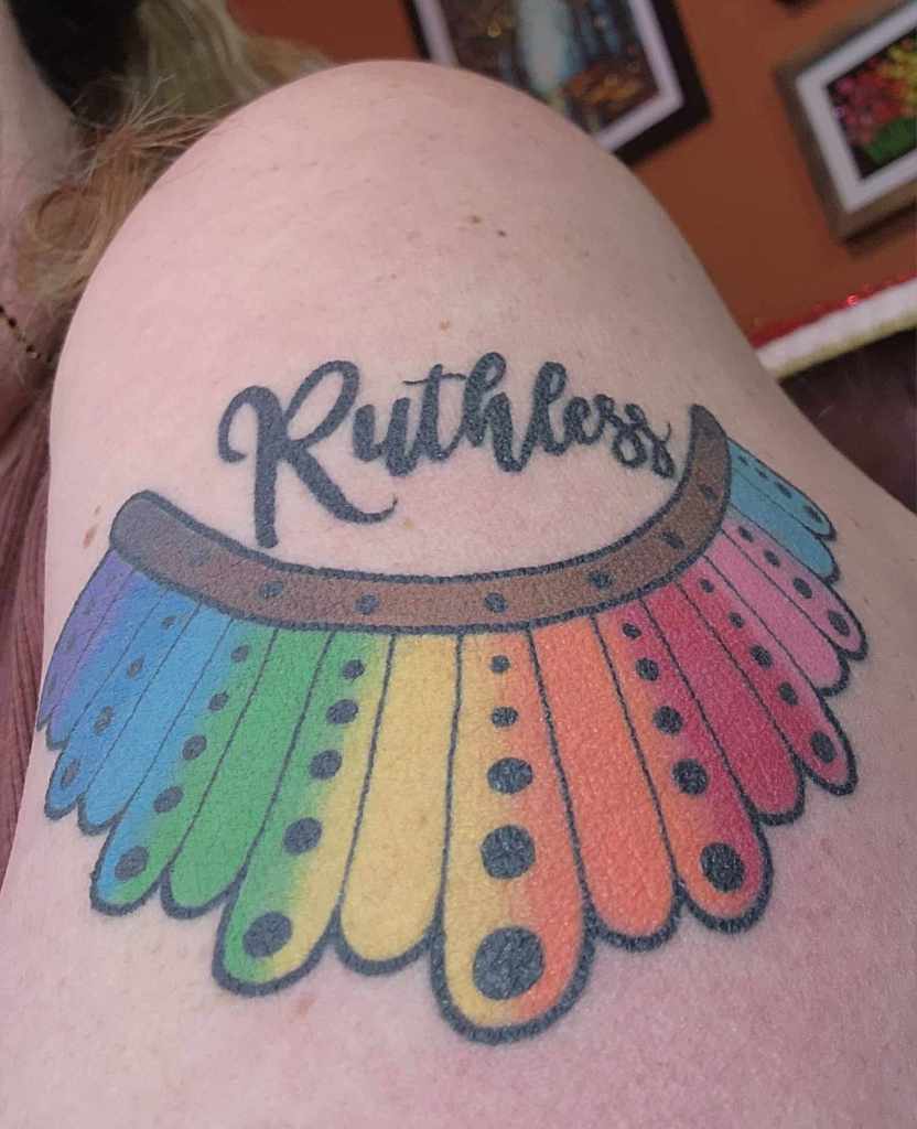 “After RBG died, I got a tattoo that is a dissent collar in the progressive pride flag colors, and it says ‘Ruthless’ on it,” Hess said.
