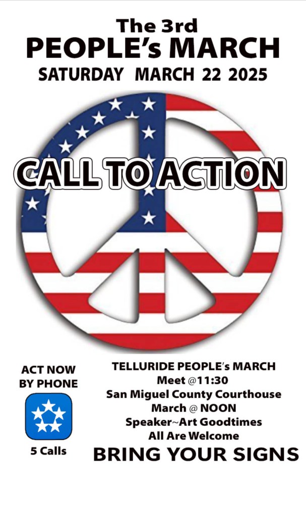 Marching in the streets of Telluride won’t change the direction of the country. But it will change us. Make us ready to act when action will be desperately needed.