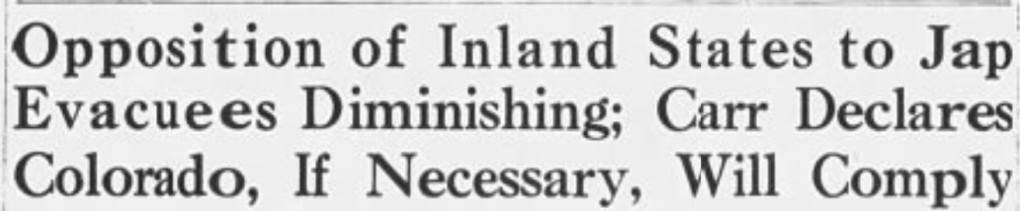 Colorado, through Governor Ralph Carr, welcomed Japanese Americans to resettle in Colorado. Most major newspapers lambasted Carr’s approval of Japanese Americans resettling in Colorado, buy The Daily Sentinel had no reaction to the news and published a statement by the Chamber of Commerce that said that the Grand Junction business and farming community had no major objection to Japanese Americans resettling in the Grand Valley.