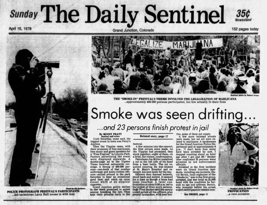 “They actually busted less people [in Grand Junction] because the people fought back. Kudos to Grand Junction,” said Lance, who had participated in numerous ‘Smoke-Ins’ with the Yippies in the 1970s.