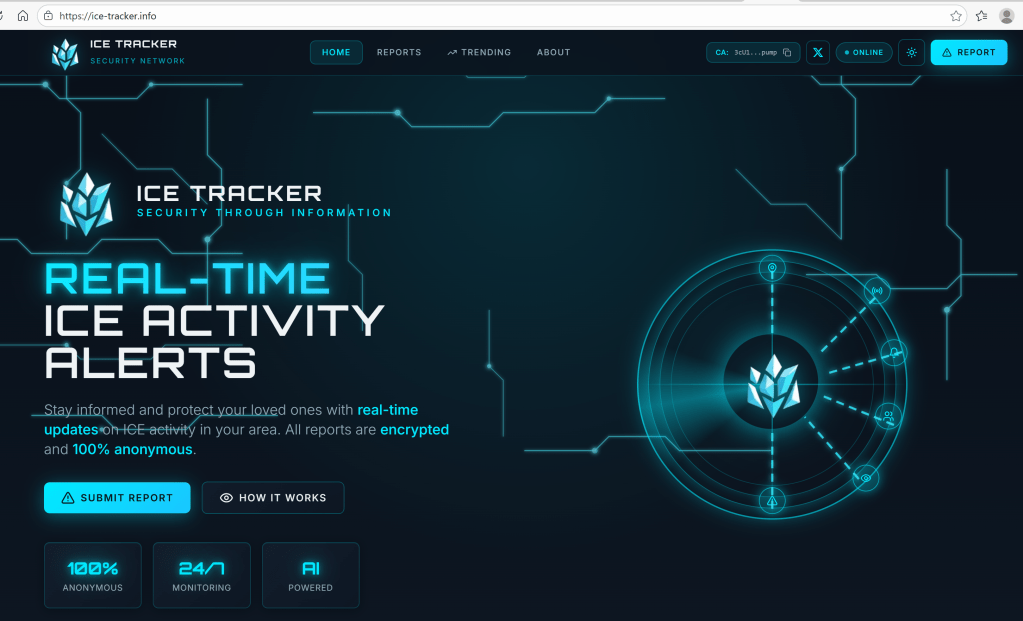 The site claims to “provide real time ICE activity alerts.” There is even a function for users to report ICE activity, but tests of this feature indicate that reports just go to whomever is running the site and never appear in the local ‘alerts.’