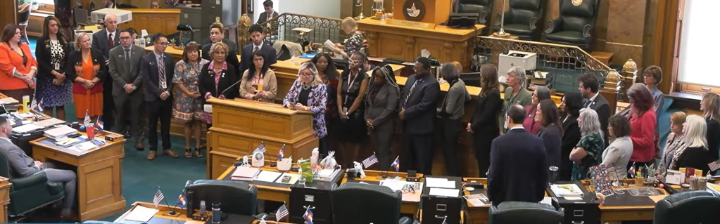 Velasco fired back from the floor of the state capital on March 2. “How are our community members supposed to trust our government or judicial system, elected officials, and law enforcement, when they are utilizing a multiagency work email chain to share a picture of a state representative that is also an immigrant to talk about political messaging and how they have no intention of following the law?” asked Representative Velasco, with 29 lawmakers behind her standing in solidarity.