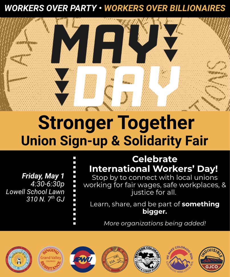 GRAND JUNCTION, CO — (April 24, 2026) — As many Western Slope residents navigate rising costs of living and economic uncertainty, community members in Grand Junction will come together this International Workers’ Day for an event focused on connection, local resources, and the issues impacting working people across the region.